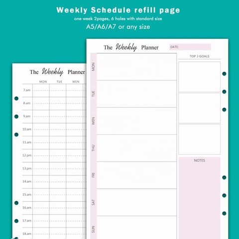 Có thể in Hàng Tuần Lịch Trình Có Thể In A5/A6/A7 refill trang kế hoạch Hàng Tuần trang 6 nhẫn chất kết dính Kế Hoạch chèn trang